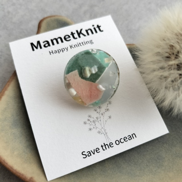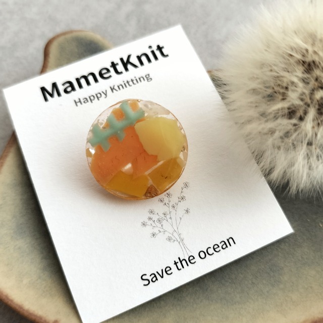 回収した海洋プラスチックを封入して ボタンを作りました。 【内容】 ◎直径20mm: 1個 【仕様】 樹脂です。水濡れは問題ありません。 一切着色せず、カラフルな海洋プラスチックの色味をそのまま活かしています。 樹脂性ですので、とても軽いボタンです。 裏側に付いている金具に糸を通して編み地に縫い付けるボタンです。 裏面仕様は写真2枚目をご覧ください。写真のボタンは、過去に販売したものです。 ゴムを通してヘアゴムへのアレンジも楽しそうです! 平らなパーツの中に、色や形の個性豊かな海洋プラスチックが入っており、厚みに個体差があります。劣化予防、表面の美しさを求めて十分なコーティングを施していますが、とくに裏面に緩やかな凹凸が残っているものもあります。 海洋プラスチックの個性と捉えていただけると幸いです。 すべてパーツから手作りのため、大量生産されている既製品のような完璧を求める方はご購入をお控えください。 裏側の金具の割れ目はパーツの中に入れ込んで固定しているので外れたり編み地に引っかかることはありません。 ---海洋プラスチックのボタン--- 海岸に漂着した海洋プラスチックを回収し洗浄したものをボタンにアップサイクルしています。 ---海洋プラスチックとは--- 海や川、湖に落ちているプラスチックゴミです。 投棄されたもの、風によって飛んできたもの、遠い場所から波に乗って漂着したもの、様々です。 色や形、回収するときの状態も様々。 自然に還ることのないプラスチックは、海の生き物たちが誤って食べてしまったり、生存を脅かしている存在です。 ---私の想い--- 大好きな編み物をしながら、 環境のこと 海のこと 地球のこと 未来のこと 少しでも貢献できたらという想いで製作しています。 世界的に見れば、ものすごい大量な海洋プラスチックゴミ。私の活動は小さな小さなものだけれど、やらないよりは絶対に良い。小さな行動がやがてきっと大きな力になるはず。そう信じて、活動を続けています。 海洋プラスチックアクセサリーの売上の一部は次の活動資金にあてたり、不定期ですが、同じ想いで活動している団体WWFへの寄付をしています。 パーツからすべて手作りとなっています。 同じ素材を使っていても、全く同じものを作ることは難しく、基本的にすべてが一点物となります。 ---注意-- ・収集した海洋プラスチックを環境に優しい洗浄方法として流水のみで洗っておりますので、プラスチック自体に汚れが残っていることがあります。樹脂で閉じ込めており、マーカー表面に汚れが付着していることはございません。少しの汚れも海洋プラスチックの個性として迎えてくださると嬉しいです。 ・1つ1つすべてハンドメイドです。編み地や手を傷つけないマーカーを作るために十分なコーティングをしています。そのことによりパーツの形に多少の個体差が生じております。 ・パーツを樹脂で固定しておりますが、過度な強い力が加わると外れたり、ピンが折れたりする可能性がございます。 ・自然光のもと、できる限り実物と同じように撮影していますが、ご使用の端末によって少し色味が違って見える場合があります。 【発送】原則ご注文から1〜5営業日以内に 発送させていただきます。 国内発送に限らせていただきます。