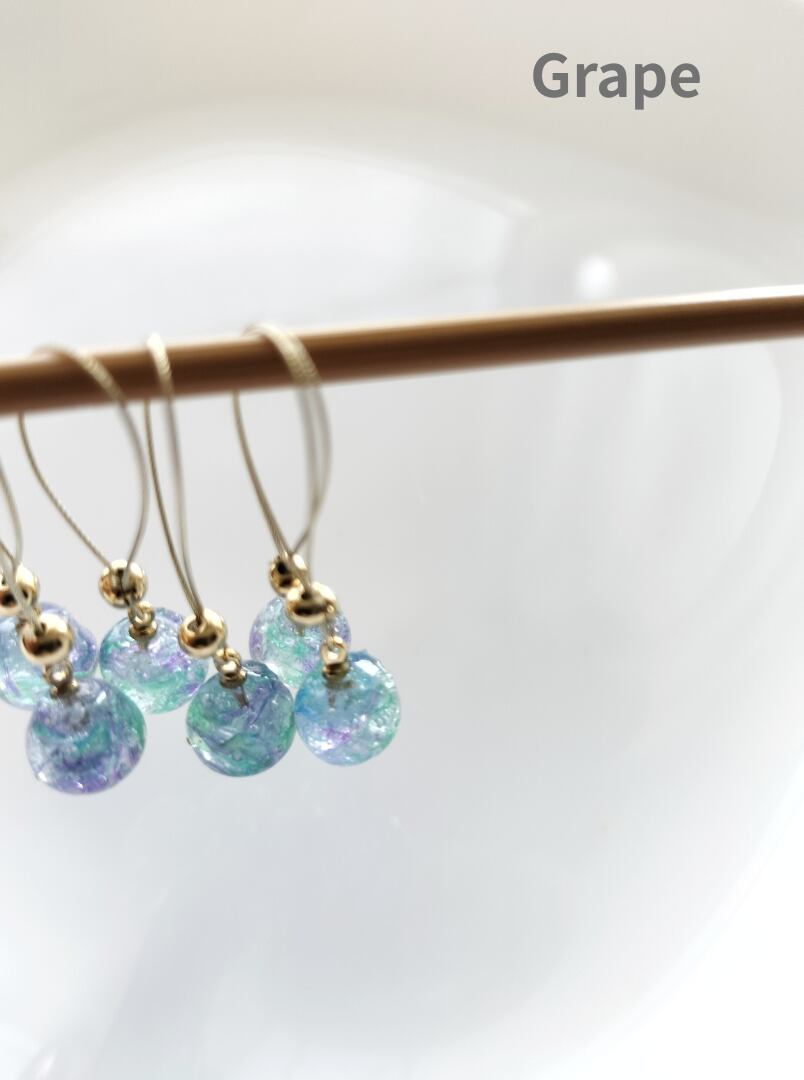 ・1つ1つすべてハンドメイドです。編み地や手を傷つけないマーカーを作るために十分なコーティングをしています。そのことによりパーツの形に多少の個体差が生じております。
