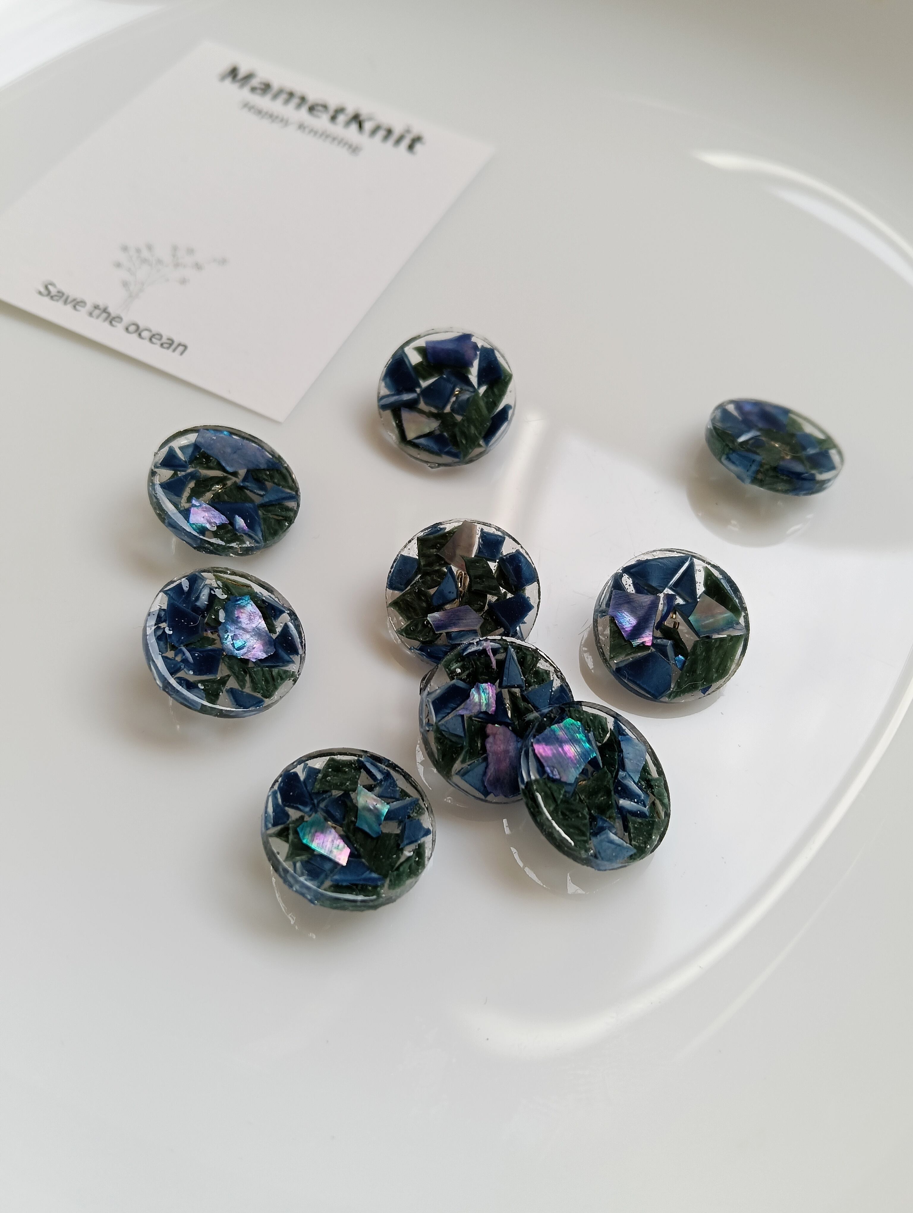 ・収集した海洋プラスチックを環境に優しい洗浄方法として流水のみで洗っておりますので、プラスチック自体に汚れが残っていることがあります。樹脂で閉じ込めており、ボタン表面に汚れが付着していることはございません。少しの汚れも海洋プラスチックの個性として迎えてくださると嬉しいです。